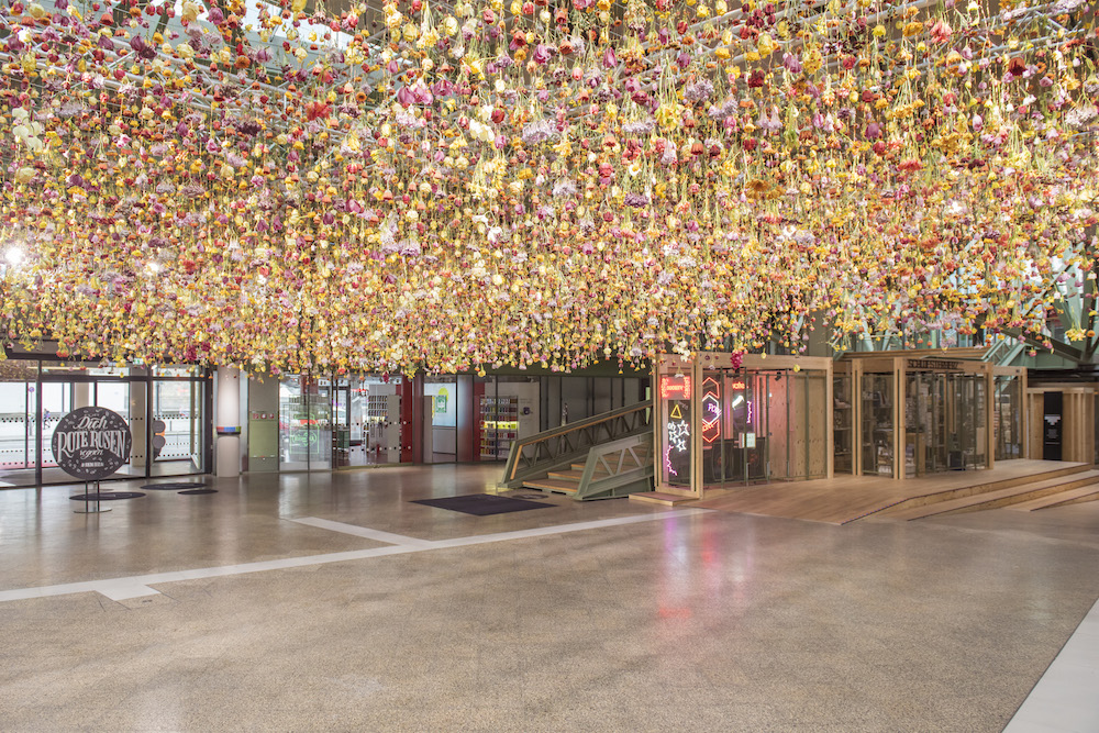 Rebecca Loiuse Law, scultrice e designer britannica conosciuta in tutto il mondo per le sue opere “non convenzionali”, ha realizzato un’installazione floreale spettacolare per celebrare l’arrivo della primavera a Berlino. L’opera è situata nell’atrio del Bikini Berlin Shopping Mall, punto di riferimento importante per lo shopping di qualità della metropoli tedesca, e annuncia la prossima apertura del flower market curato dall’azienda olandese Toll was blumen machen, la quale ha donato tutti fiori presenti nell’installazione.