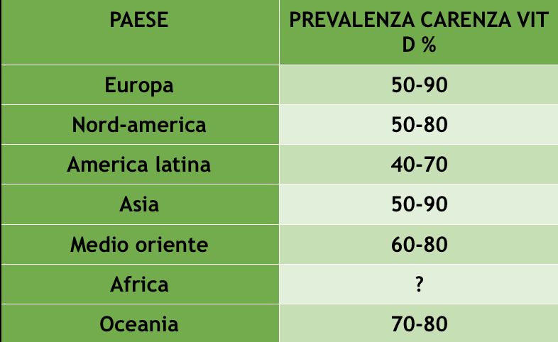 Nonostante tutto molte persone si trovano in uno stato carenziale e la tabella sotto mette in evidenza la situazione globale: