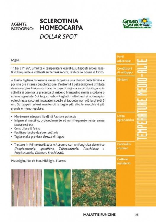 Oggi scriviamo della sclerotinia homeocarpa. Quella che segue è una scheda del libro, chiara e schematica, accessibile e ricca di informazioni.